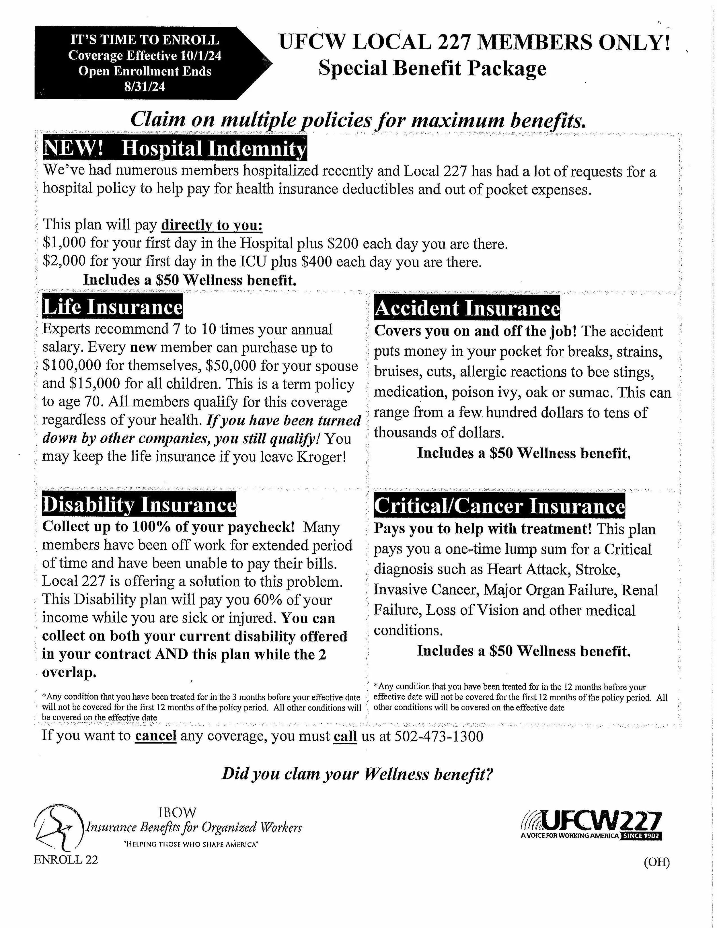 UFCW 227 members who work at Kroger have access to expanded short term disability, life insurance and Illness coverage at a great price and can pay premiums directly from their paycheck thanks to their union contract. Union stewards play an important role in getting the word out and enrollment applications in members’ hands.