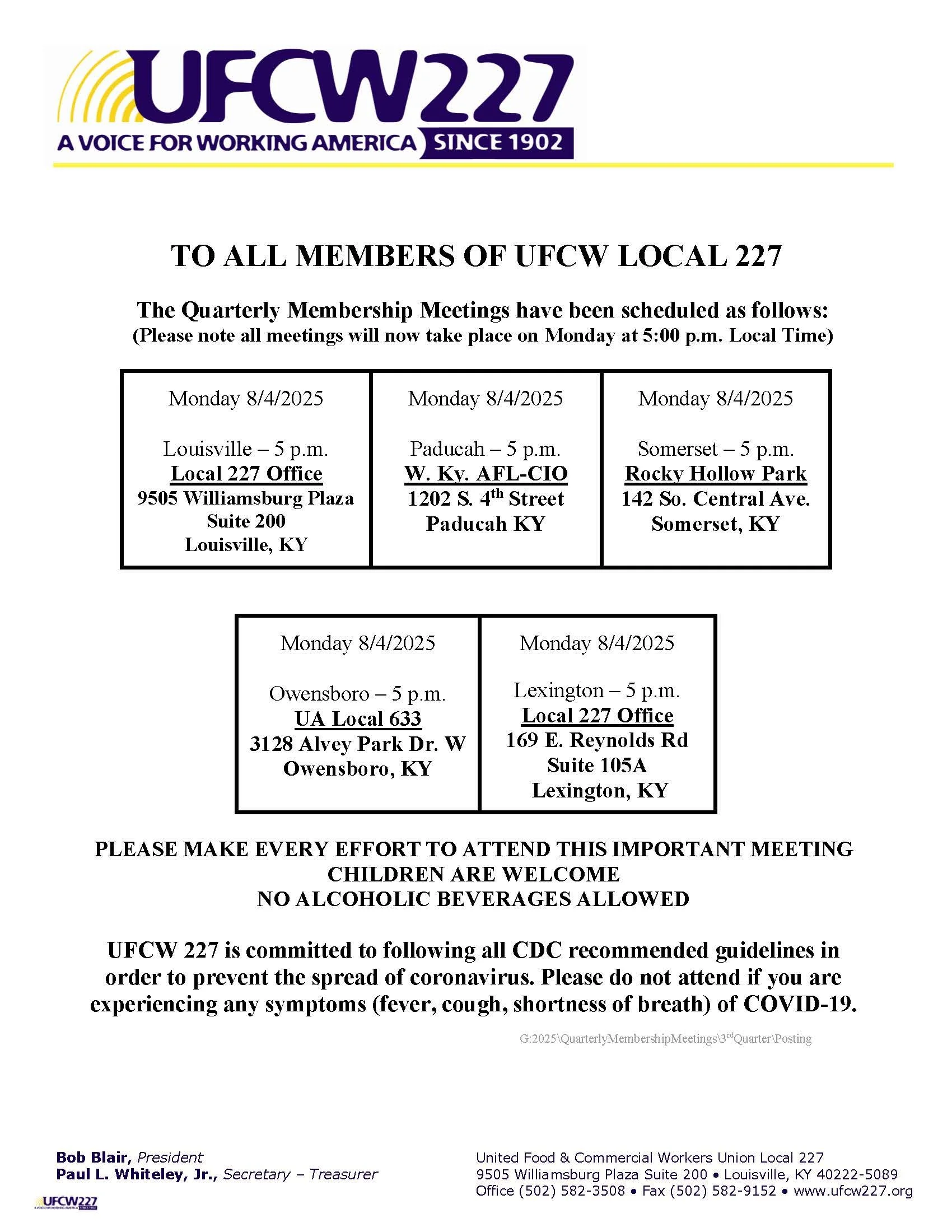 UFCW 227 Officers and Executive Board